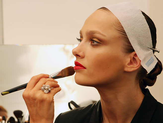 Makeup artists behind the scenes at Gucci, during Milan Fashion Week earlier last week, created some of the most gorgeous makeup I’ve seen at the shows this season! The skin is glowing, the eyes pop and the lips are to die for. I’ve been staring at these pictures for days.