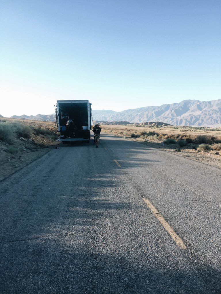 The set medic on this shoot was amazing. She used to work in the military and did work in Afghanistan so she was fully prepped to take care of everyone in these conditions. She kept everyone extra hydrated by adding electrolytes to our water. She also provided us with cooling neck wraps which you soak in ice water and they retain the cold for a few hours… they were a lifesaver.